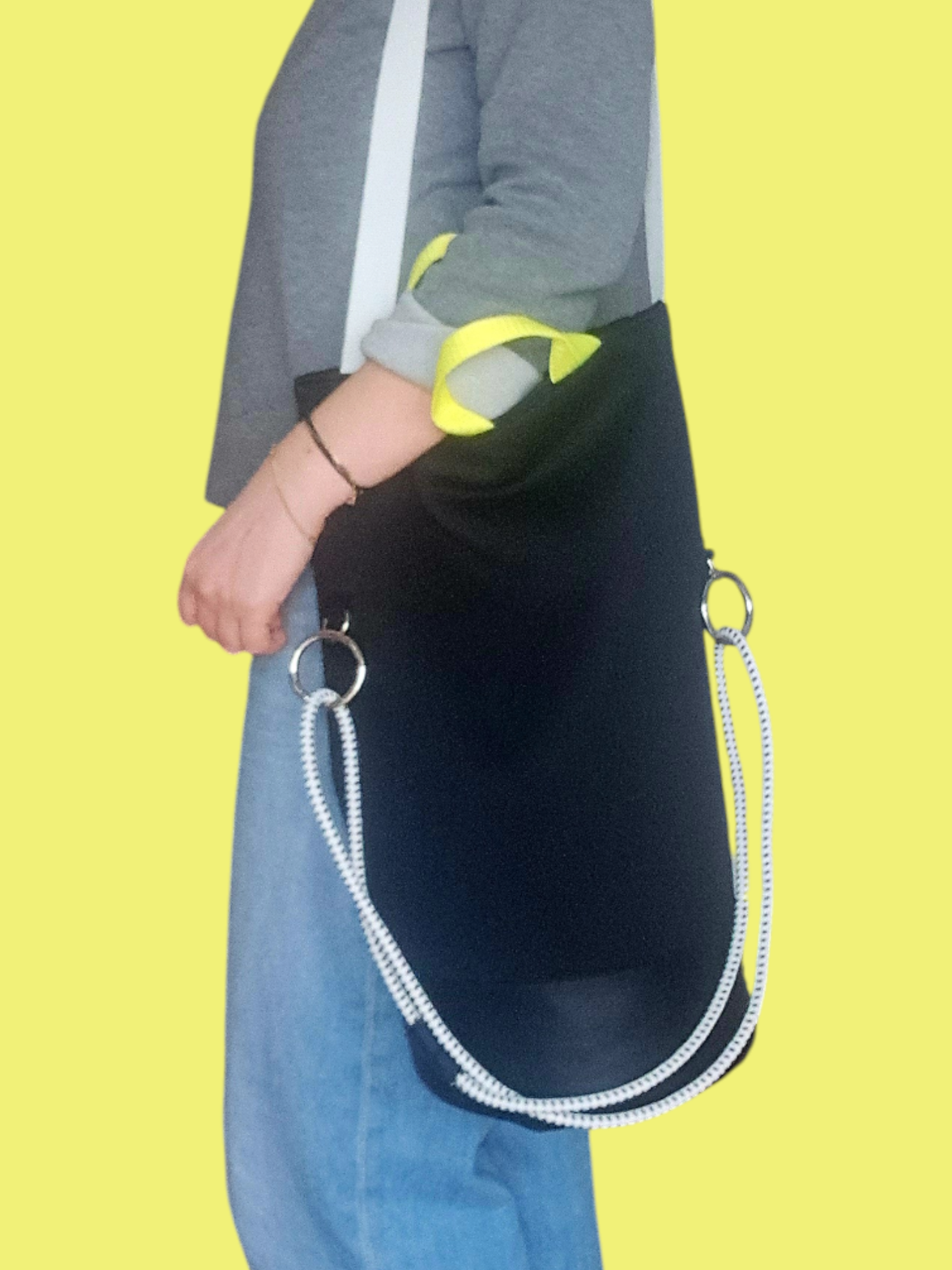 Na sebi ima više gurtni raznih duljina, te se može nositi na nekoliko načina, u ruci, na ramenu, presavijen, na leđima…..